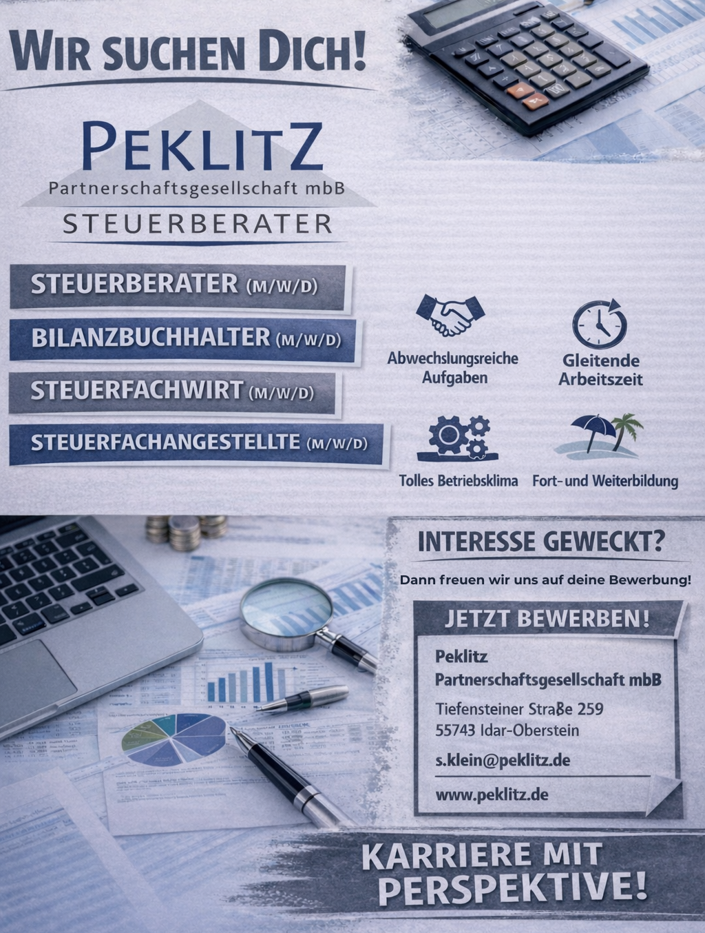 Die Steuerberaterkanzlei Peklitz PartG mbB vereint Tradition und Innovation auf einzigartige Weise. Mit einem jungen, dynamischen Team und einem entspannten, kollegialen Umgang miteinander herrscht ein sehr angenehmes Arbeitsklima, das eigenverantwortliches Arbeiten fördert. Großer Wert wird darauf gelegt, dass die Mitarbeiter gut zusammenpassen, was zu einem harmonischen und produktiven Arbeitsumfeld beiträgt. Jeder Einzelne wird ermutigt, seine Stärken einzubringen und voneinander zu lernen, wodurch eine Kultur des kontinuierlichen Wachstums und der gegenseitigen Unterstützung entsteht. Die Kanzlei bietet schnelle Aufstiegsmöglichkeiten und hervorragende Weiterbildungsmöglichkeiten, was den Mitarbeitern ermöglicht, ihr volles Potenzial auszuschöpfen und immer auf dem neuesten Stand der steuerlichen Entwicklungen zu bleiben. Durch den Einsatz modernster Technik und zukunftsorientierter Arbeitsweisen gewährleistet Peklitz PartG mbB eine effiziente und präzise Bearbeitung der Kundenanliegen. Trotz der modernen Ausrichtung bleibt die Kanzlei fest in der regionalen Tradition verwurzelt und pflegt eine enge Verbindung zur lokalen Wirtschaft und Gemeinschaft. Diese Kombination aus tief verwurzelter Tradition und innovativer Denkweise macht Peklitz PartG mbB zu einem verlässlichen und fortschrittlichen Partner für ihre Mandanten. Das einzigartige Arbeitsklima und das gute Zusammenpassen der einzelnen Mitarbeiter machen die Kanzlei zu einem attraktiven Arbeitsplatz, an dem Teamarbeit und individuelle Weiterentwicklung gleichermaßen gefördert werden.